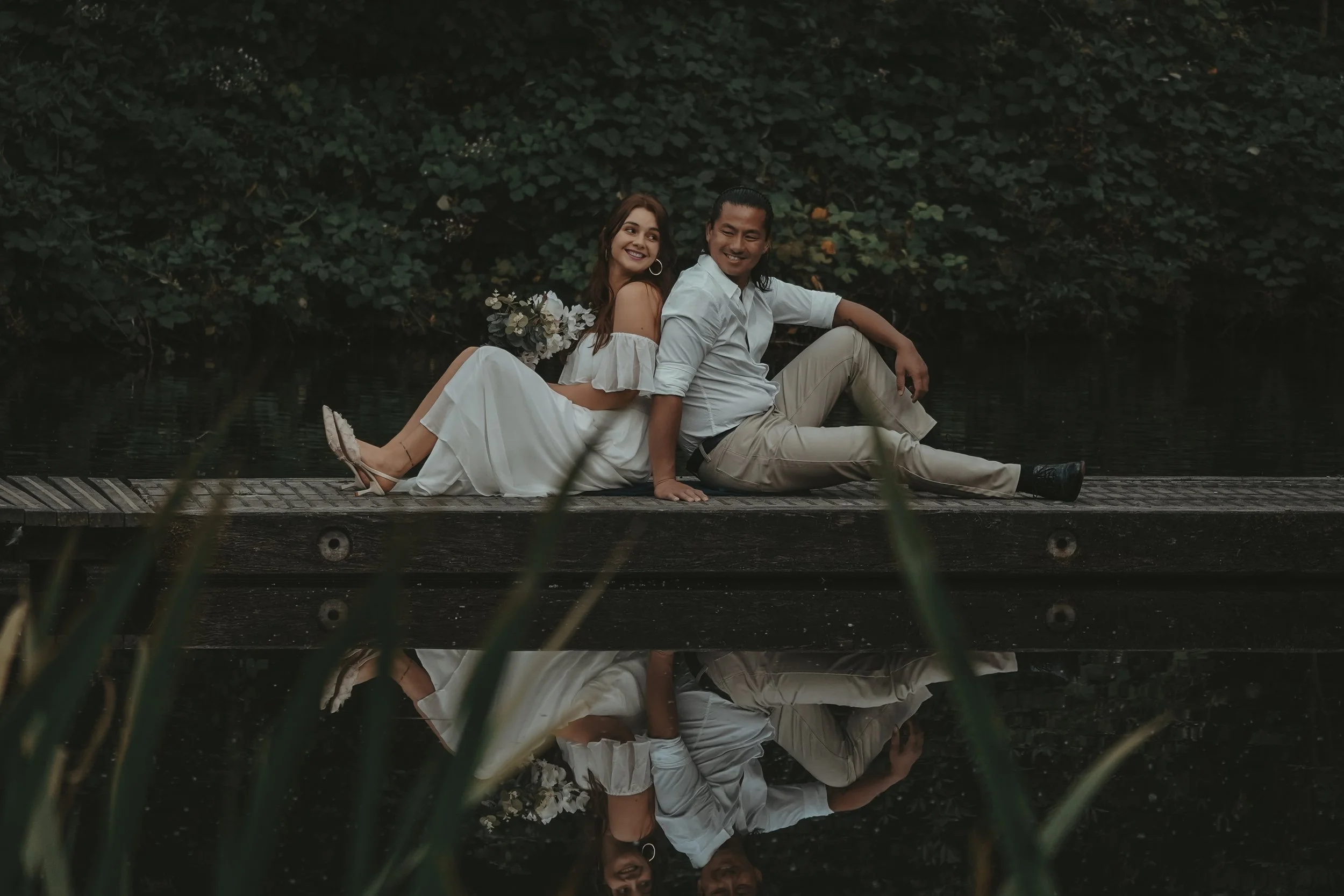 Captured during a calm late afternoon in the Amsterdamse Bos, this pre-wedding shoot unfolds in soft evening light, following Silfon & Carolina through quiet, natural surroundings.
